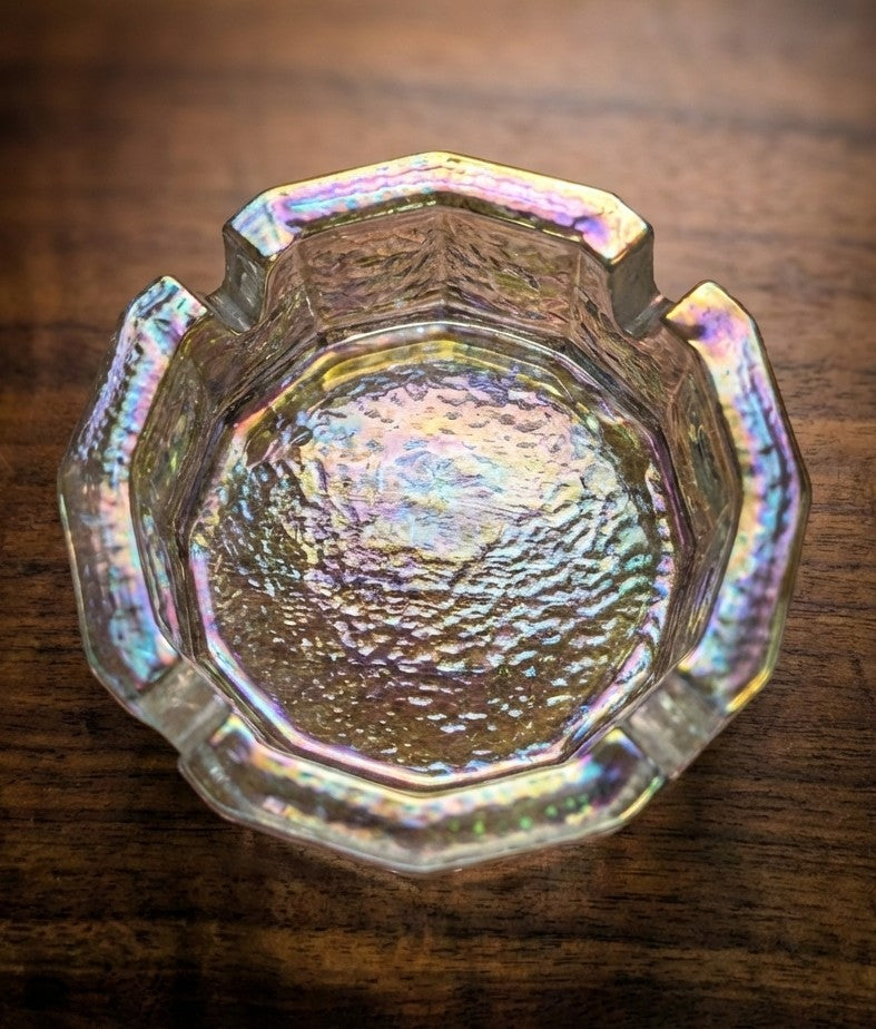 Curated for the modern home that values history and character. The octagonal geometry offers a sharp contrast to organic wooden surfaces, while the iridescent finish adds a touch of retro-futurism to your coffee table or nightstand.